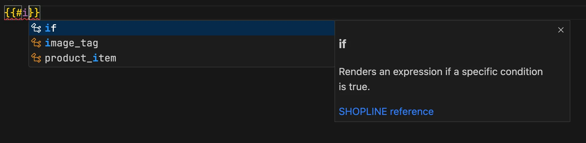 For example, when you type {{#if and press Enter, the code completes as follows:
