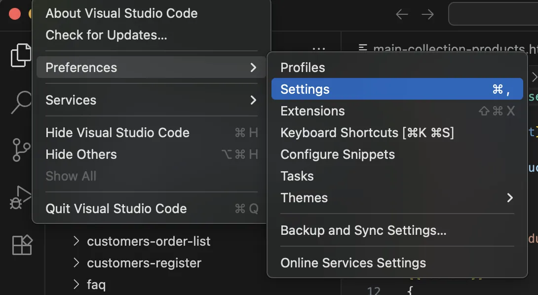 Go to Preferences > Settings.