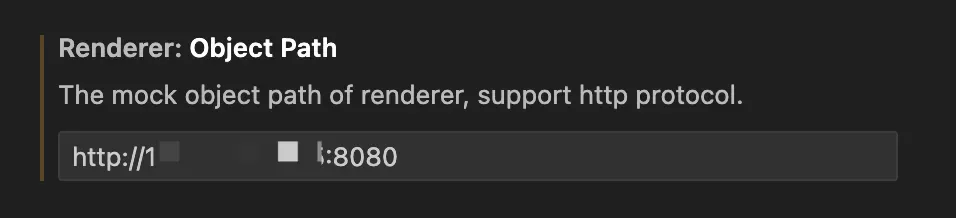 Modify Renderer: Object Path, which supports two methods: a local absolute address directory and an HTTP remote interface. Changes take effect after restarting VS Code.