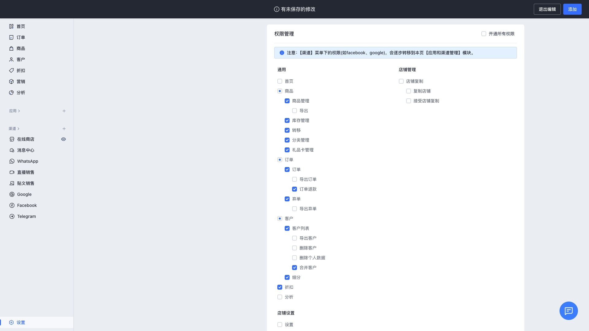 作为 SHOPLINE 商家,你可以给合作伙伴添加员工账号,并可以通过管理员工的权限,让合作者有权使用合作者账户访问商家开启权限的部分。