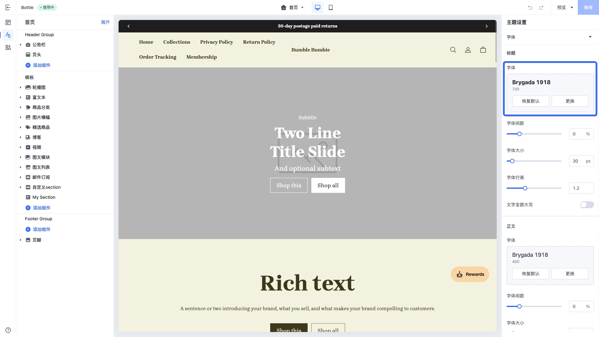 SHOPLINE 主题默认使用谷歌字体库作为字体库,该字体库字体种类繁多、风格各异,能适配多种设计风格,能为用户带来美观舒适的视觉体验。