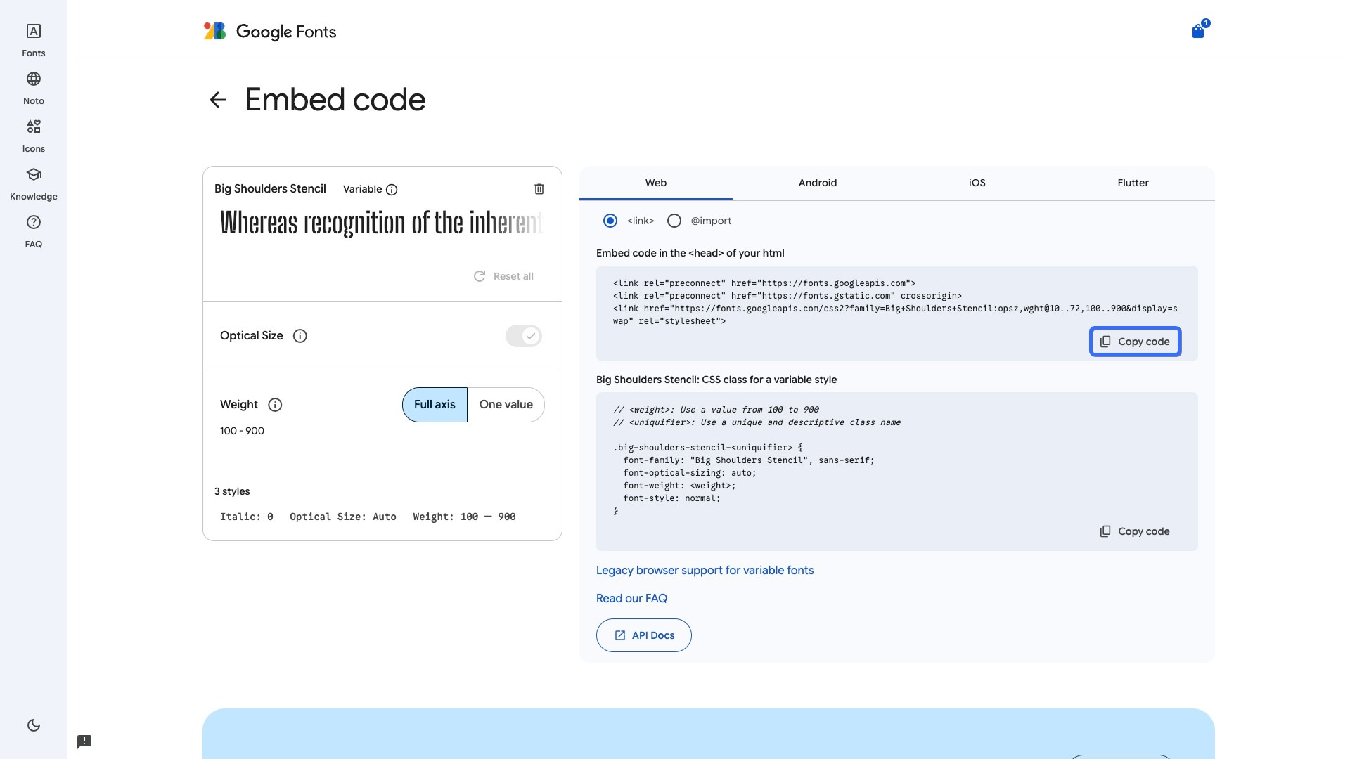 获取谷歌字体嵌入代码块