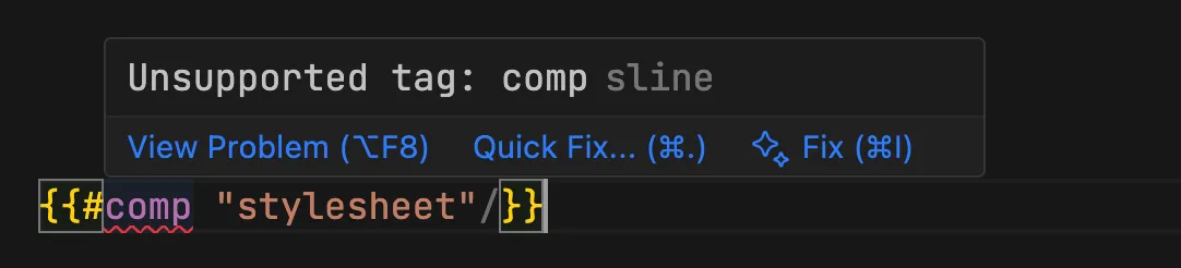 在开发任何的 .html 文件时,当你在编辑器输入 {{# 字符时,后面输入的字符都会去匹配相应的 tag 并给到 tag 列表供选择,按下回车键后进行代码补全。