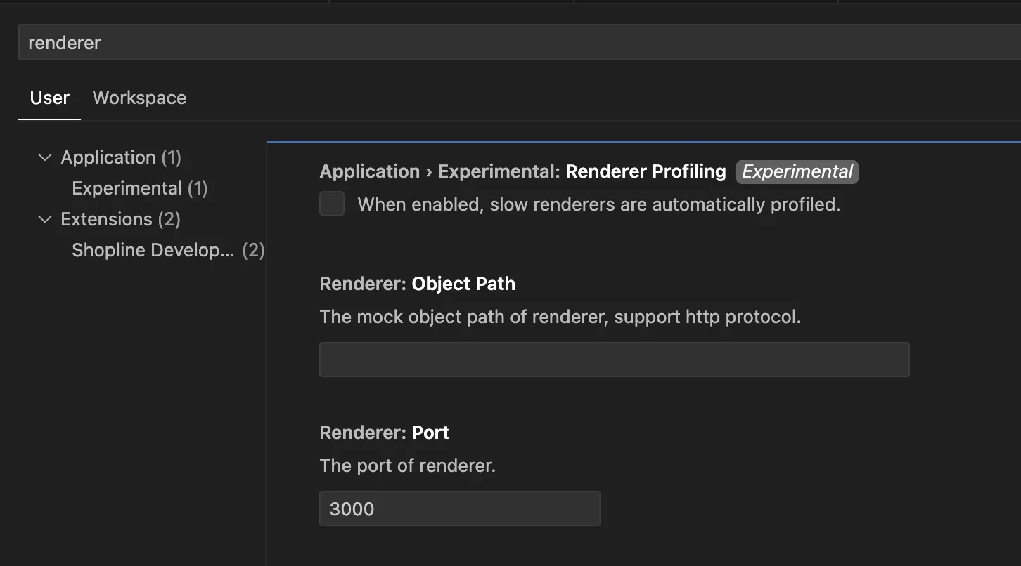 在 搜索设置 (Search settings) 里输入 renderer。